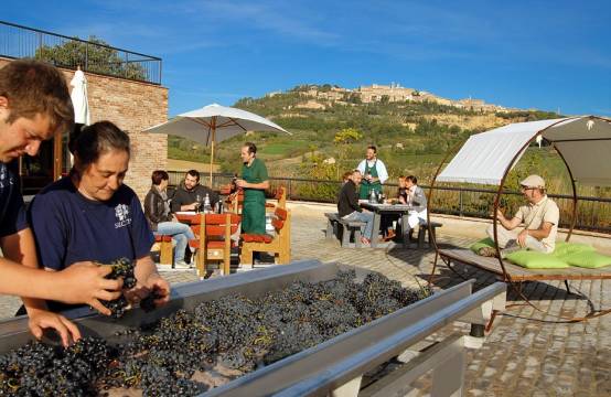 Het prachtig onderhouden wijnbedrijf – waar je ook lekker kunt eten, met groenten uit de eigen moestuin – heeft 50 hectare wijnstokken, verdeeld over drie wijngaarden. Die liggen op ongeveer 450 meter hoogte, waardoor ze koeler zijn en druiven met betere aroma’s afleveren. Die druiven zijn grotendeels typisch Italiaanse rassen, zoals de blauwe pugnolo gentile (een alias van de bekende sangiovese) of de witte trebbiano.