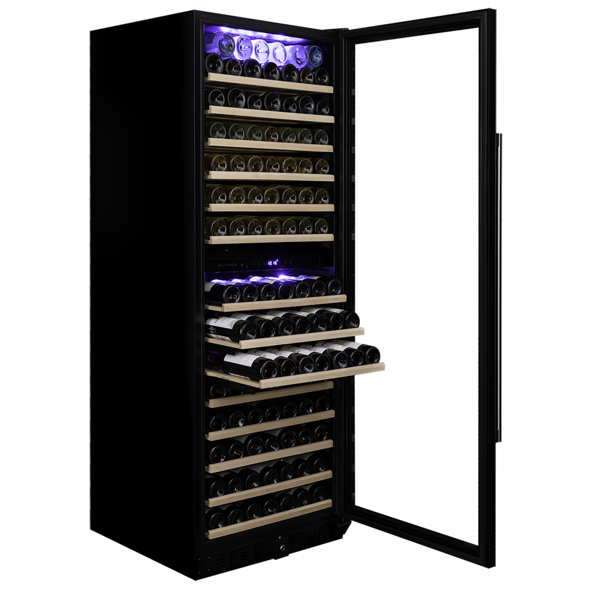 De Dunavox Grande-181 DX-181.490DBK is een topklasse wijnklimaatkast die ruimte biedt aan maar liefst 181 flessen (0,75 liter Bordeaux-formaat). Deze elegante kast is ontworpen voor zowel vrijstaand als inbouw gebruik en combineert functionaliteit met een stijlvol ontwerp. De kast is voorzien van houten leggers die telescooprails bevatten, waardoor flessen gemakkelijk kunnen worden in- en uitgeschoven. De blauwe LED-verlichting zorgt voor een sfeervolle presentatie van uw wijncollectie. Met een geluidsniveau van slechts 40 dB werkt de kast relatief stil, waardoor hij ideaal is voor gebruik in woon- of commerciële ruimtes. De kast is geschikt voor zowel inbouw als vrijstaand gebruik, afhankelijk van uw voorkeur en ruimte. De omkeerbare deur biedt flexibiliteit bij de installatie, en de UV-beschermende glazen deur helpt de kwaliteit van de wijn te behouden. Met een energieverbruik van G volgens het EU-energielabel is het belangrijk om het energieverbruik in overweging te nemen bij de aanschaf van dit apparaat. De kast wordt geleverd met een 3 jaar fabrieksgarantie, wat extra gemoedsrust biedt.